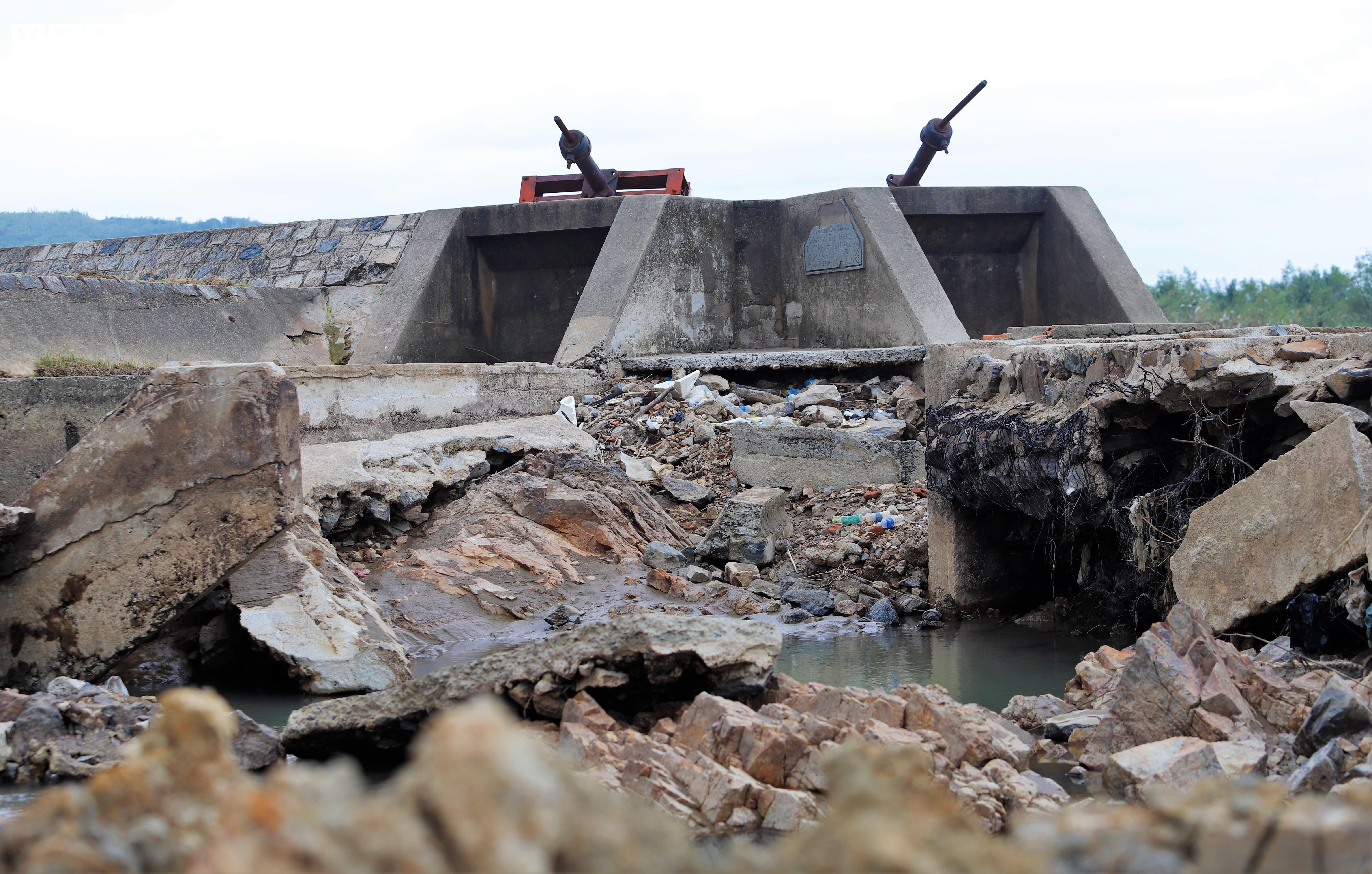 Thời điểm đập vỡ, nước lũ về nhanh và dâng cao, che phủ đập, ngập đến mái nhà cấp 4 của người dân lân cận. Chỉ khi nước rút thì người dân mới biết đập đã tan hoang.