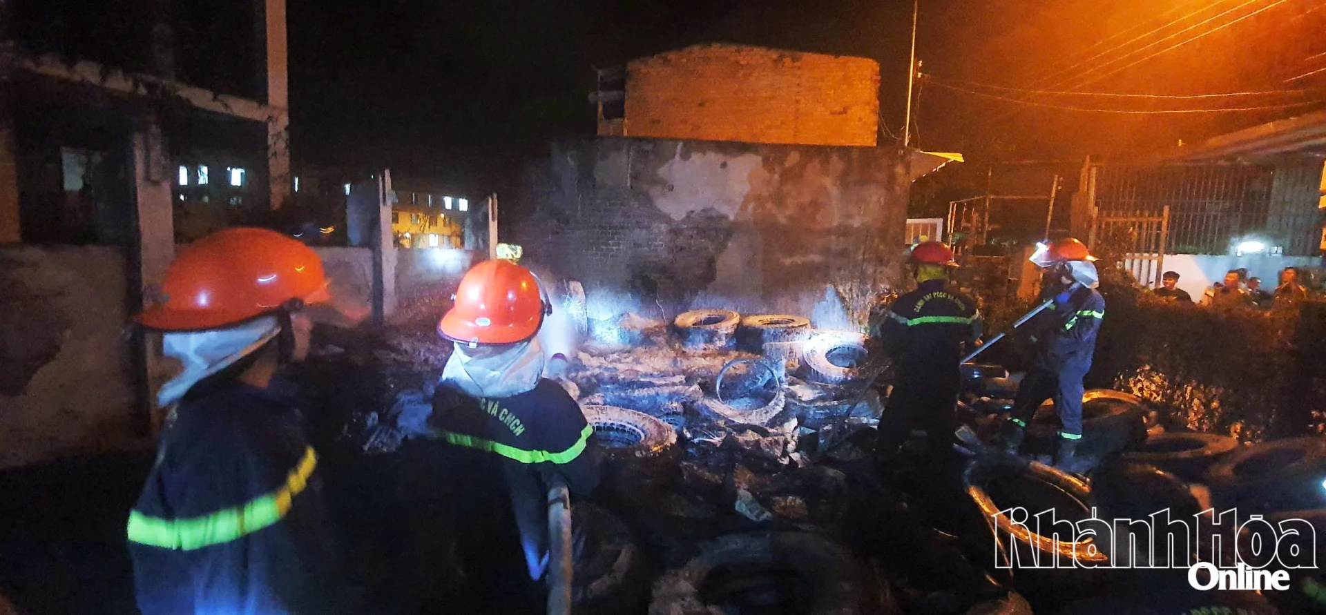 Sau nhiều phút nỗ lực chữa cháy, đến hơn 22 giờ ngày 22-12, các chiến sĩ thuộc Phòng Cảnh sát phòng cháy chữa cháy và cứu nạn, cứu hộ (PCCC và CNCH) Công an tỉnh Khánh Hòa đã dập tắt hoàn toàn đám cháy xảy ra tại bãi tập kết lốp xe ô tô cũ nằm sâu trong hẻm đường Nguyễn Khuyến, thuộc tổ dân phố 7 Tây Nam 1, phường Bắc Nha Trang.