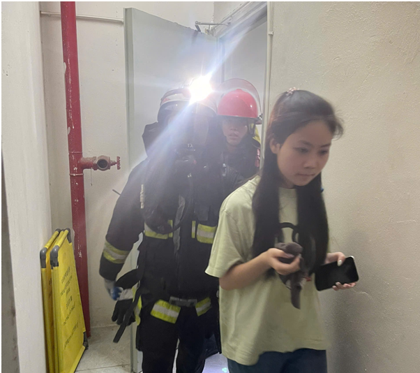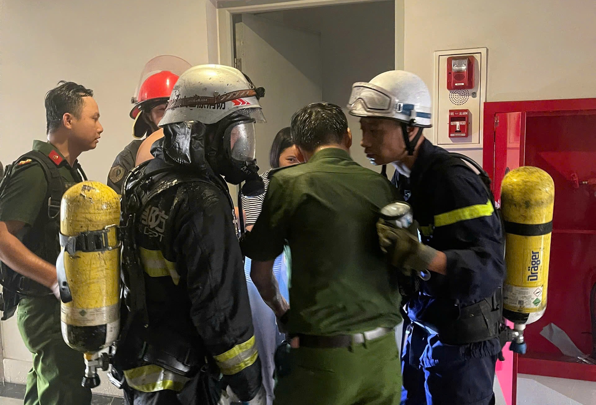 Đến nơi, chỉ huy chữa cháy đã chỉ đạo cán bộ chiến sỹ triển khai sử dụng bình thở và các thiết bị chuyên dụng tiếp cận khu vực xảy ra cháy để tìm kiếm và hướng dẫn 3 người tại căn hộ 601 thoát nạn theo cầu thang bộ xuống dưới khu vực an toàn.