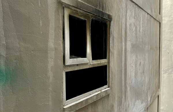 Khói thoát ra khỏi cửa sổ căn hộ trên tầng 15.