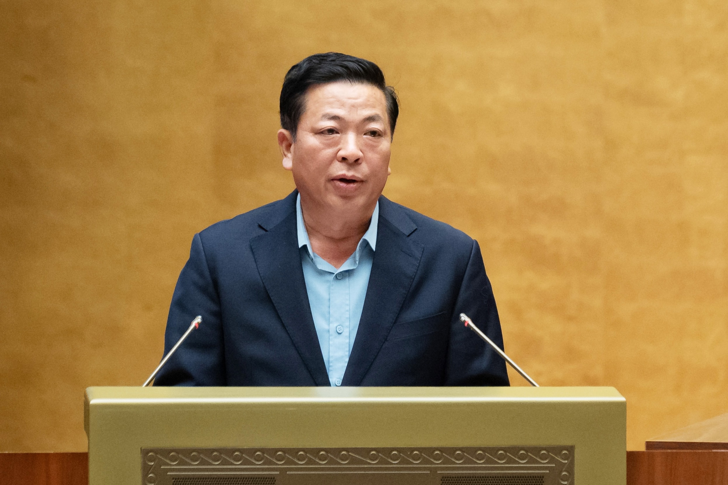 Bộ trưởng Bộ Xây dựng Trần Hồng Minh trình bày Tờ trình về việc điều chỉnh nội dung Nghị quyết số 94/2015/QH13 của Quốc hội về chủ trương đầu tư Dự án Cảng hàng không quốc tế Long Thành. Ảnh: Phạm Thắng