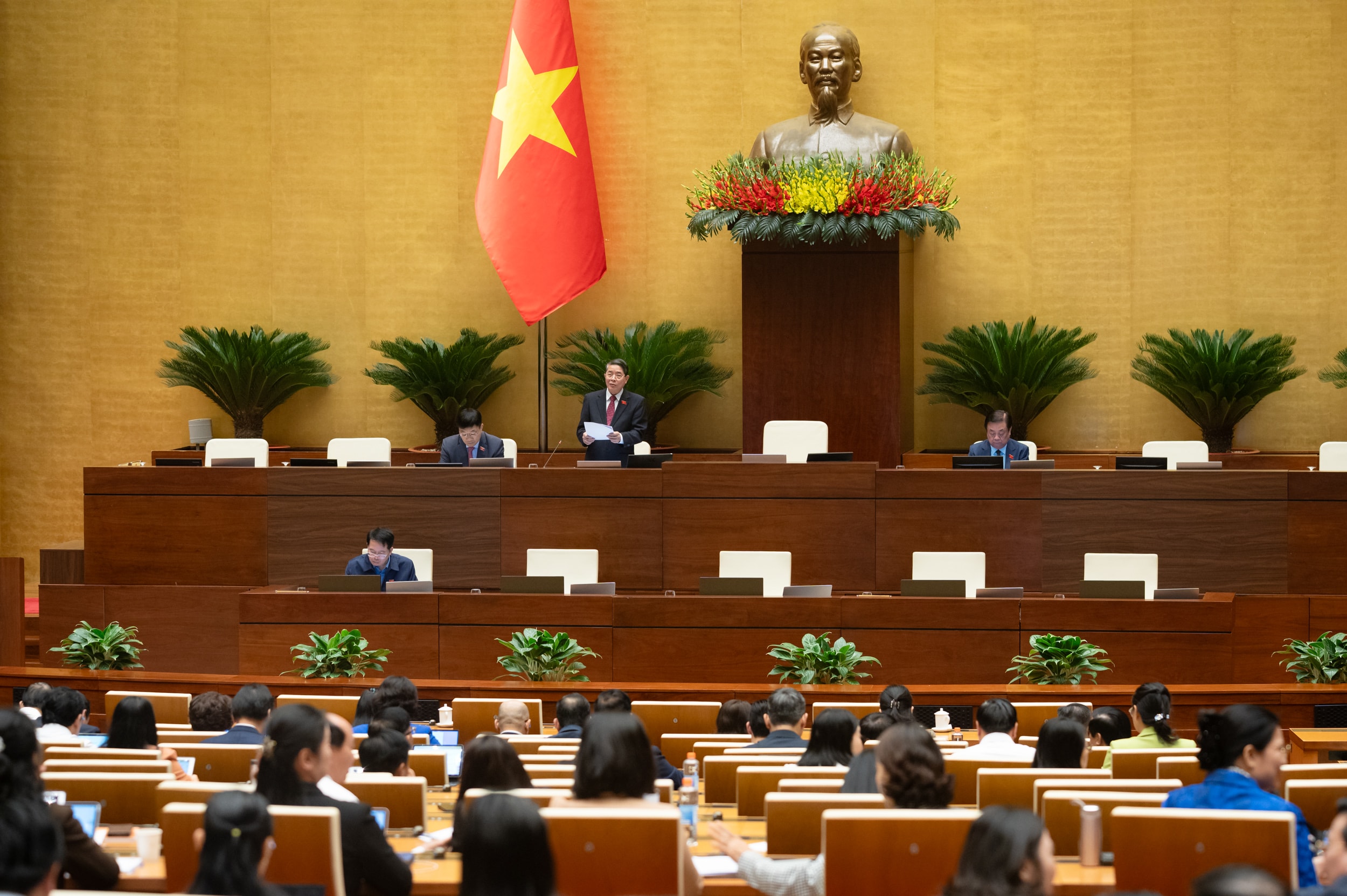 Chủ nhiệm Ủy ban Kinh tế và Tài chính Phan Văn Mãi trình bày Báo cáo thẩm tra. Ảnh: Phạm Thắng