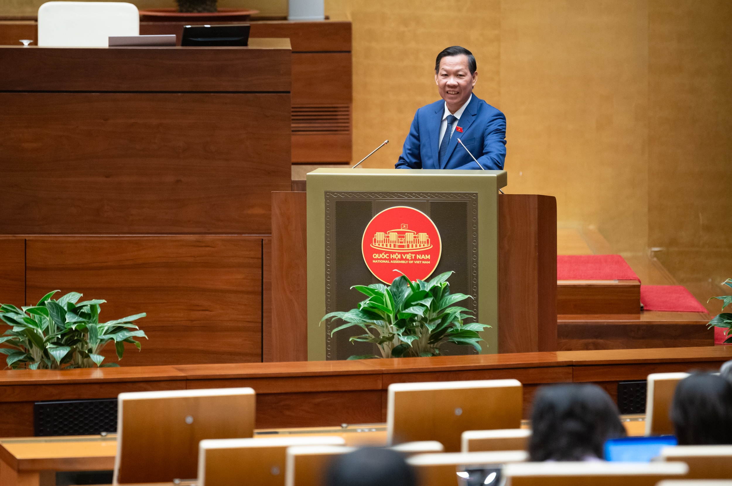 Báo cáo thẩm tra do Chủ nhiệm Ủy ban Kinh tế và Tài chính Phan Văn Mãi trình bày nêu rõ, Ủy ban cho rằng, kiến nghị của Chính phủ là có cơ sở và cũng phù hợp với các quy định của pháp luật hiện hành cùng với việc thực hiện chủ trương của Đảng về đẩy mạnh phân cấp, phân quyền đáp ứng yêu cầu phát triển đất nước trong kỷ nguyên mới. Quy định về đẩy mạnh phân cấp, phân quyền, đơn giản hóa, rút ngắn thời gian lập Báo cáo nghiên cứu khả thi, quyết định đầu tư dự án quan trọng quốc gia tại khoản 1 Điều 43 của Luật Đầu tư công năm 2024 (được sửa đổi, bổ sung năm 2025).