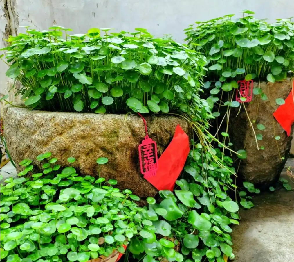 Cây rau má cảnh với những chiếc lá tròn như đồng xu, mang ý nghĩa tiền tài sinh sôi và cuộc sống sung túc. Ảnh: Baidu