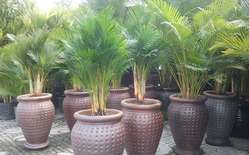 4. Cây cau cảnh: Ngày xưa hầu như nhà nào cũng trồng cau trước sân, không chỉ vì đẹp mà còn bởi cau giúp lưu thông sinh khí, xua tà khí. Thân cau thẳng tắp tượng trưng cho chính trực, còn tàu lá vươn lên biểu hiện cho sự phát triển không ngừng. Nhà có hàng cau đứng trước hiên, người ta tin đó là dấu hiệu của gia đạo yên lành, con cháu hiếu thuận.
