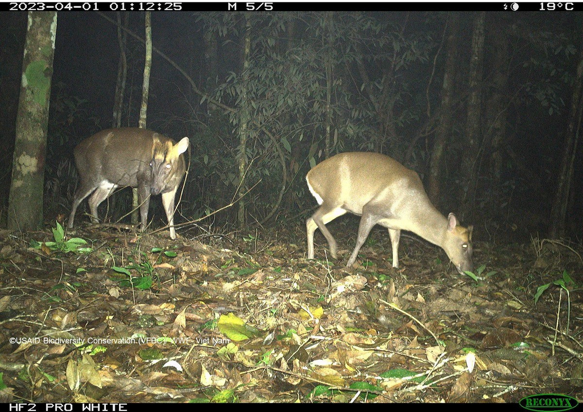 Trong đợt kiểm tra dữ liệu từ máy ảnh tự động đặt trong rừng mới nhất, Vườn quốc gia Chư Mom Ray ghi nhận hình ảnh về loài mang Trường Sơn quý hiếm. Ảnh: Khu bảo tồn thiên nhiên Phong Điền.