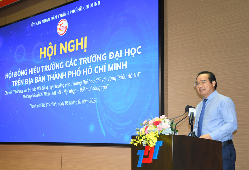 Chiều tối ngày 8/1/2026, UBND TP. Hồ Chí Minh tổ chức Hội nghị Hội đồng Hiệu trưởng các trường đại học trên địa bàn thành phố. Chủ tịch UBND TP. Hồ Chí Minh Nguyễn Văn Được, Chủ tịch Hội đồng Hiệu trưởng các trường đại học trên địa bàn TP. Hồ Chí Minh chủ trì hội nghị.