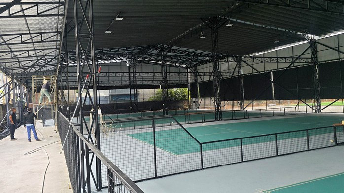 Cụ thể, 4 sân bóng đá mini đang được trải thảm cỏ nhân tạo; 6 sân pickleball đã cơ bản hoàn thiện cùng khu vực kinh doanh giải khát.