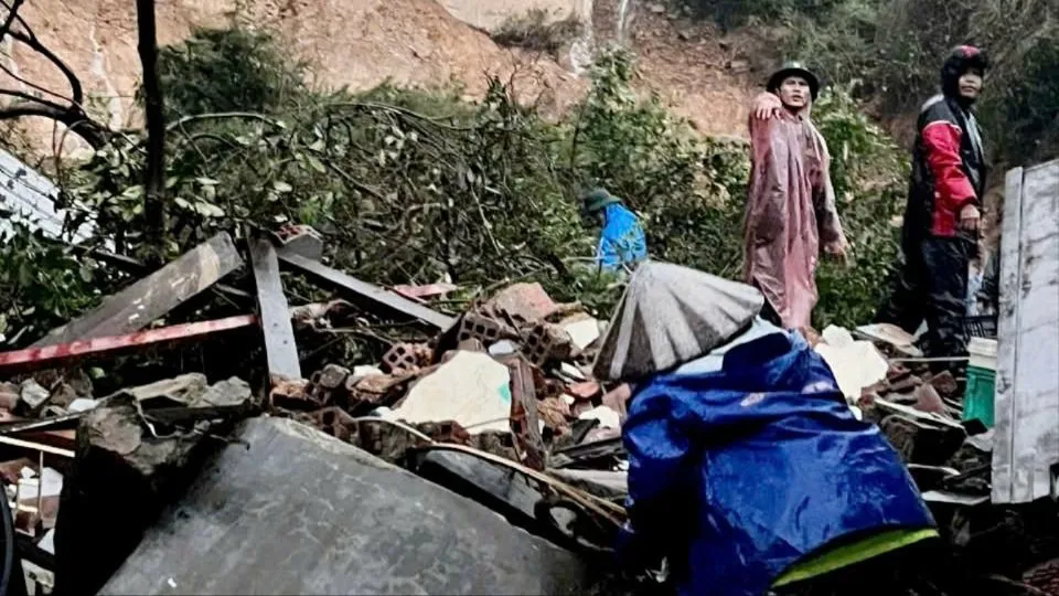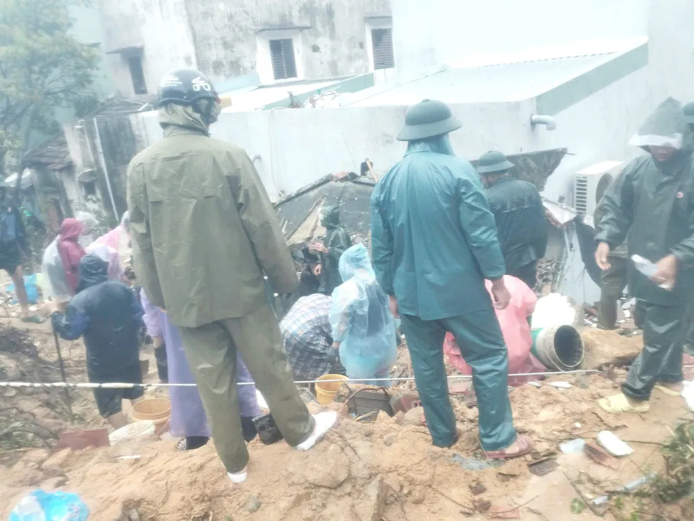 Theo đó, khoảng 4 giờ sáng cùng ngày, mưa lớn kéo dài khiến đất đá từ sườn núi ập xuống khu phố 9 Hải Ninh, phường Quy Nhơn. Khối đất đá ập xuống làm sập căn nhà, khiến 2 người lớn tuổi mắc kẹt bên trong.