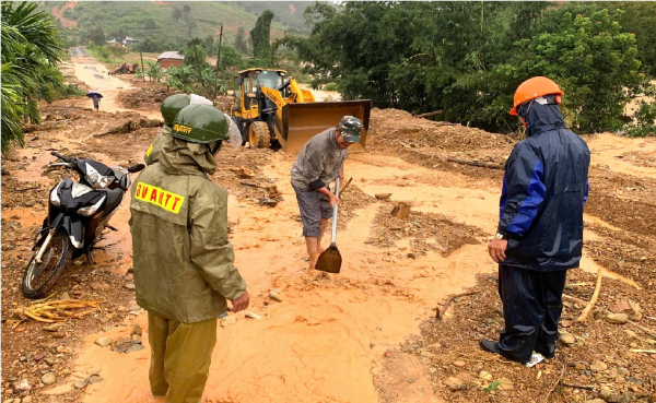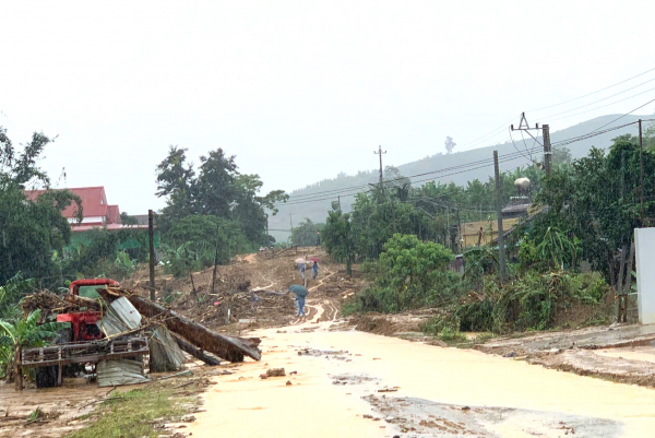 Vụ sạt lở đã khiến hàng nghìn m3 đất, đá chắn ngang đường khiến tuyến giao thông bị tắc hoàn toàn, phương tiện không thể lưu thông qua lại. Ngay sau đó, lực lượng chức năng đã vào kiểm tra, hỗ trợ khai thông tuyến đường nhỏ để cho xe máy đi qua. Các phương tiện khác thì không thể di chuyển.