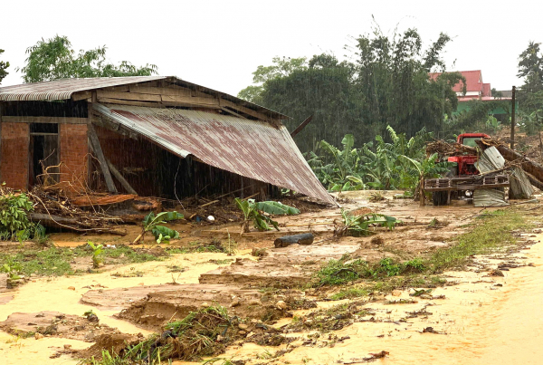 Căn nhà vài tài sản của một người dân bị dòng nước và đất, đá phủ kín.