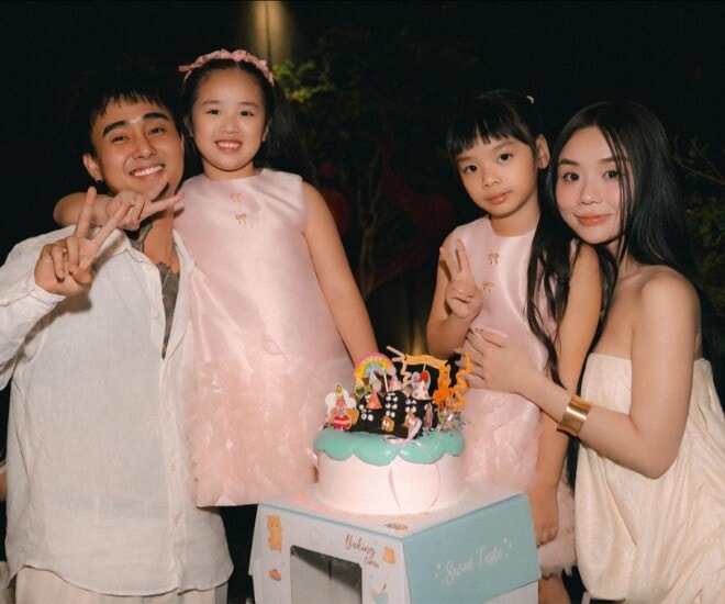 Cindy Lư và Đạt G trong buổi tiệc sinh nhật của hai con gái.