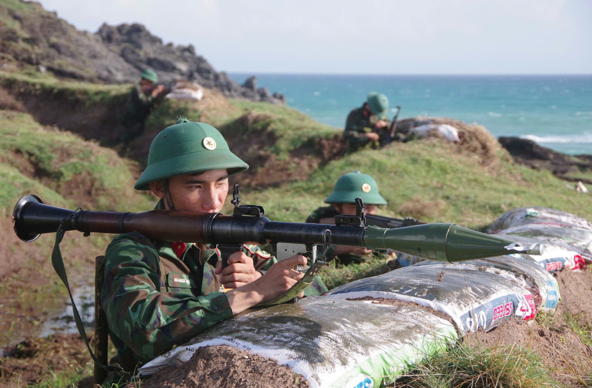 Cán bộ, chiến sĩ Phòng thủ Khu vực 5 - Phan Thiết diễn tập phòng ngự bờ biển tại Đặc khu Phú Quý