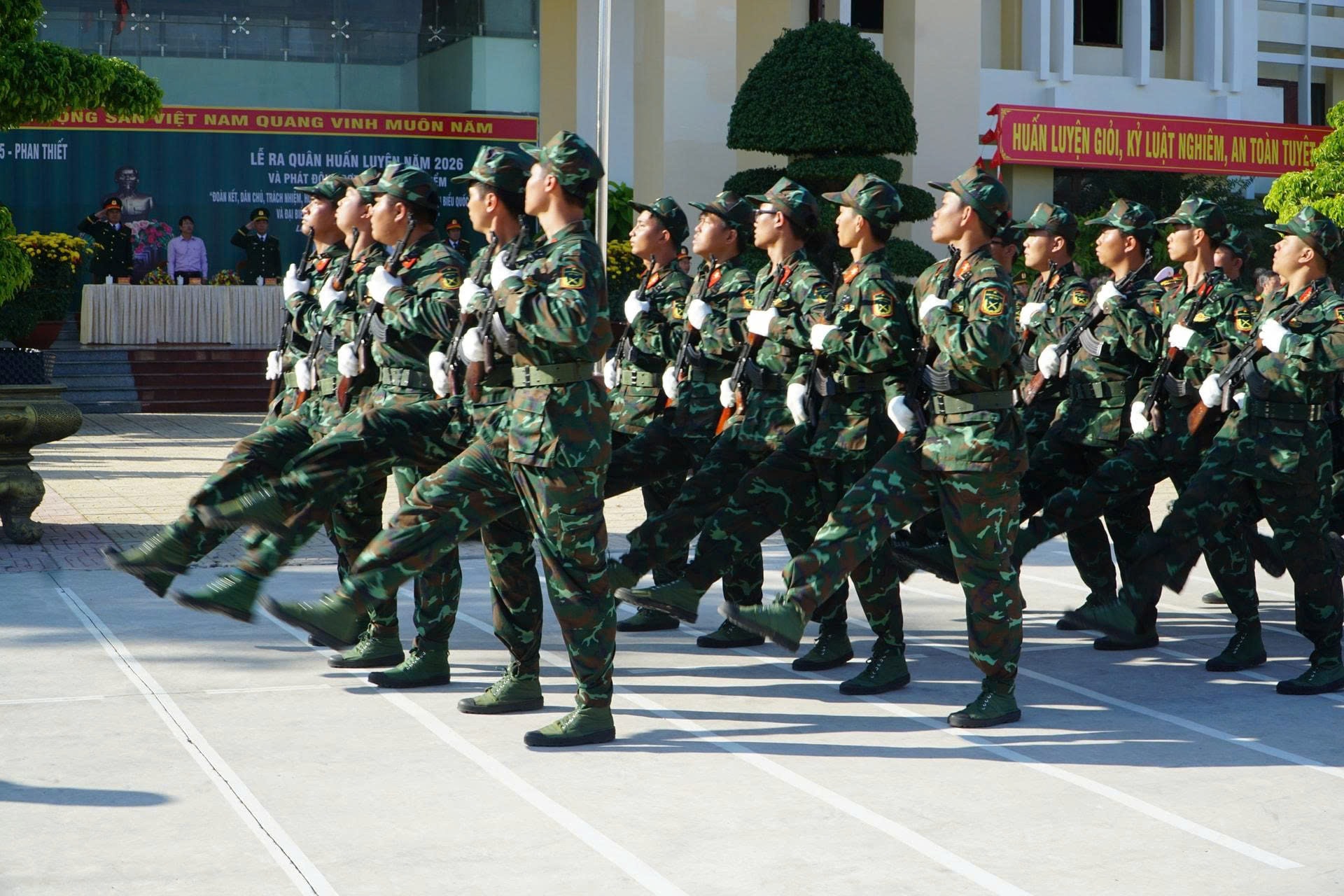 Cán bộ, chiến sĩ Phòng thủ Khu vực 5 - Phan Thiết ra quân huấn luyện năm 2026