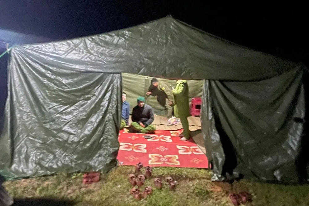 Các lực lượng trực xuyên đêm. Ảnh: UBND xã Hùng Sơn