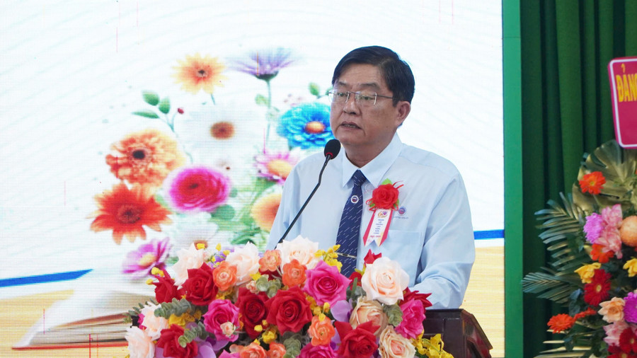 TS Nguyễn Minh Quân, Hiệu trưởng Trường Cao đẳng Kiên Giang phát biểu tại buổi lễ.