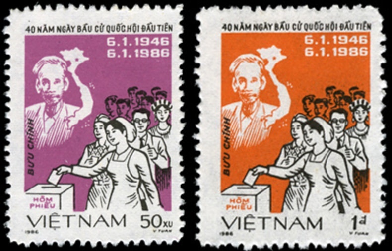 Đánh dấu sự kiện này, ngày 6/1/1986, bộ tem “Kỷ niệm 40 năm bầu cử Quốc hội đầu tiên” đã được phát hành. Bộ tem gồm 2 mẫu do họa sĩ Đỗ Việt Tuấn thiết kế, được in hai màu tại Nhà in Tiến Bộ.