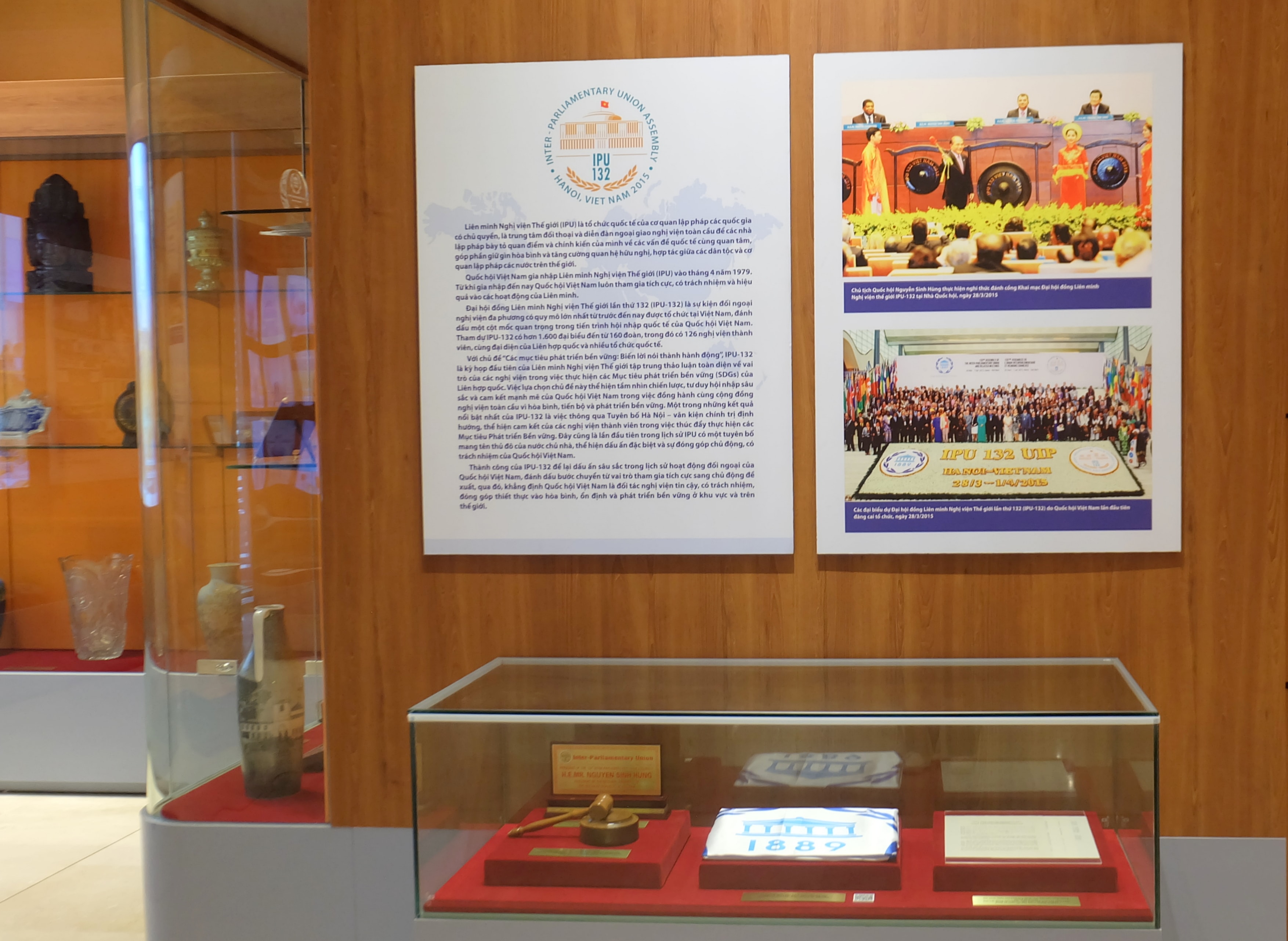 Cùng với đó là các hiện vật gắn với Đại hội đồng Liên minh Nghị viện Thế giới lần thứ 132 (IPU-132) do Việt Nam chủ trì. Như chiếc cồng khai mạc Đại hội đồng Liên minh Nghị viện Thế giới lần thứ 132 (IPU-132) do Chủ tịch Quốc hội Nguyễn Sinh Hùng trịnh trọng đánh vang ngày 28/3/2015, mở đầu cho sự kiện ngoại giao nghị viện lớn nhất từng tổ chức tại Việt Nam.