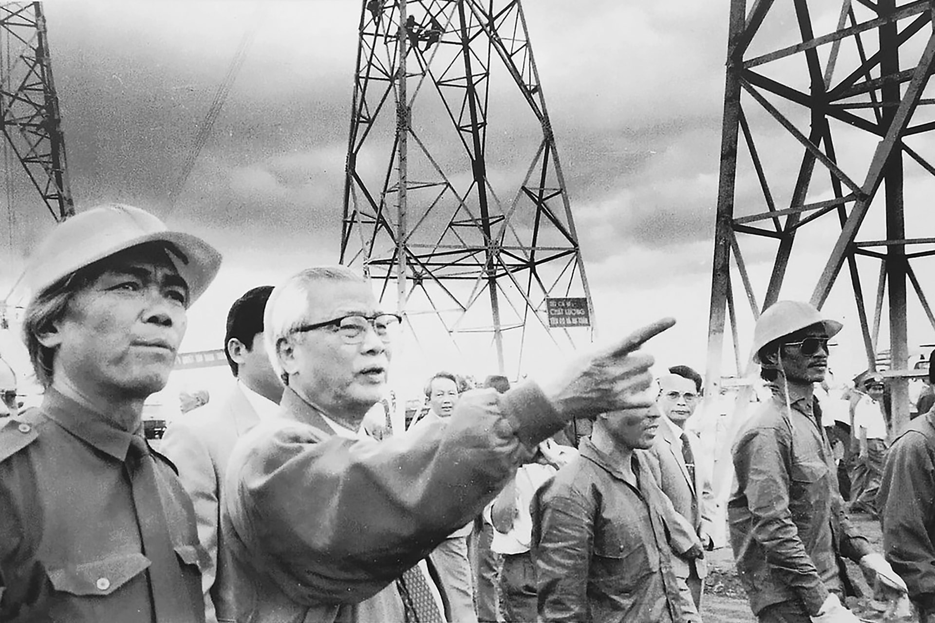Thủ tướng Võ Văn Kiệt trên công trình xây dựng đường dây truyền tải điện 500kV. Ảnh: Tư liệu