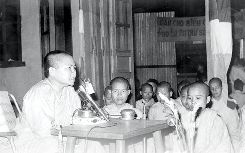 Trong bài phát biểu trong một buổi lễ, Ni trưởng nói: “Giáo hội ta trong mười năm đầu chuyên tu giải thoát, khất thực trì bình, giảng kinh du hóa. Mười năm kế, vì chiến tranh leo thang nên ta thiên về từ thiện xã hội nhiều hơn như: Ủy lạo nạn nhân chiến cuộc, lửa cháy nước trôi, nuôi trẻ mồ côi, tặng quà bệnh viện, giúp kẻ tản cư, v.v… Mười năm kế nữa, vào lúc Phật pháp mắc nạn, gọi là “Pháp nạn”, thì ta tham gia thống nhất Phật giáo, tiếp tục đấu tranh vào cuối năm 1963 trở đi. Đến cuối năm 1969, các phong trào đấu tranh lắng dịu vì chính quyền đàn áp thẳng tay, chỉ còn giới phụ nữ hăng say đòi chồng, đòi con, chống bắt lính, đòi thả tù học sinh, sinh viên,…” (10)