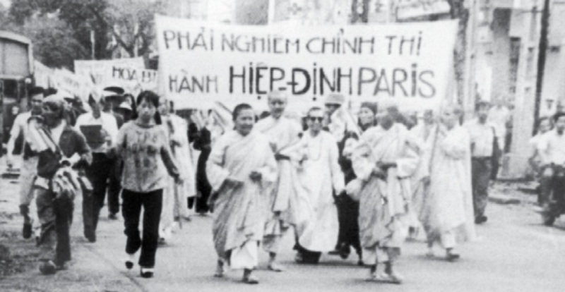 Ni trưởng tham gia thành lập và giữ vai trò cố vấn cho phong trào Phụ nữ đòi quyền sống, được ra mắt tại chùa Ấn Quang ngày 2/8/1970 và trụ sở của phong trào đặt tại tịnh xá Ngọc Phương. Các năm tiếp sau, Ni trưởng tiếp tục tham gia thành lập Mặt trận Nhân dân tranh thủ dân chủ hòa bình do cụ Đặng Văn Ký làm chủ tịch. Ni trưởng đã liên tiếp tổ chức thành công các cuộc lễ “Xuống tóc vì hòa bình” (18/10/1970); mít-tinh chống Mỹ và ngụy quyền (25/10/1970); mít-tinh ra tuyên ngôn 10 điểm về hòa bình của Mặt trận Nhân dân tranh thủ dân chủ hòa bình (7/11/1970), triển khai thành lập chi nhánh phong trào Phụ nữ đòi quyền sống tại Cần Thơ, Trà Vinh (22/11/1970), hoặc Ni trưởng cùng phối hợp với các phong trào Sinh viên học sinh, phong trào Dân tộc tự quyết, Ủy ban cải thiện chế độ lao tù… tổ chức biểu tình đòi thả tù nhân chính trị (1/1/1971), phối hợp với phụ nữ quốc tế lên án chiến tranh, vận động hòa bình (5/1/1971), tổ chức họp báo với đề tài “Nhân dân đòi cơm áo, Phật giáo đòi hòa bình”, “Nông dân đòi quyền sống”, đòi lại ruộng đất đã bị ngụy quyền cướp đoạt để xây dựng các công trình phục vụ chiến tranh (7/4/1971), đấu tranh buộc ngụy quyền phải thả bà Ngô Bá Thành - Chủ tịch phong trào Phụ nữ đòi quyền sống (6/9/1971), phối hợp với đồng bào Công giáo tố cáo các chính sách thâm độc của Mỹ, nhân sự có mặt của Thượng nghị sĩ Mác Govern tại Nhà thờ Dòng Chúa cứu thế đường Kỳ Đồng. Phối hợp với sinh viên, học sinh Sài Gòn, Gia Định chống “Quân sự hóa học đường” (18/9/1971) hoặc phối hợp với công nhân hãng pin Con Ó chống lại sự bóc lột và sa thải công nhân của chủ tư sản (18/11/1971)… (11)