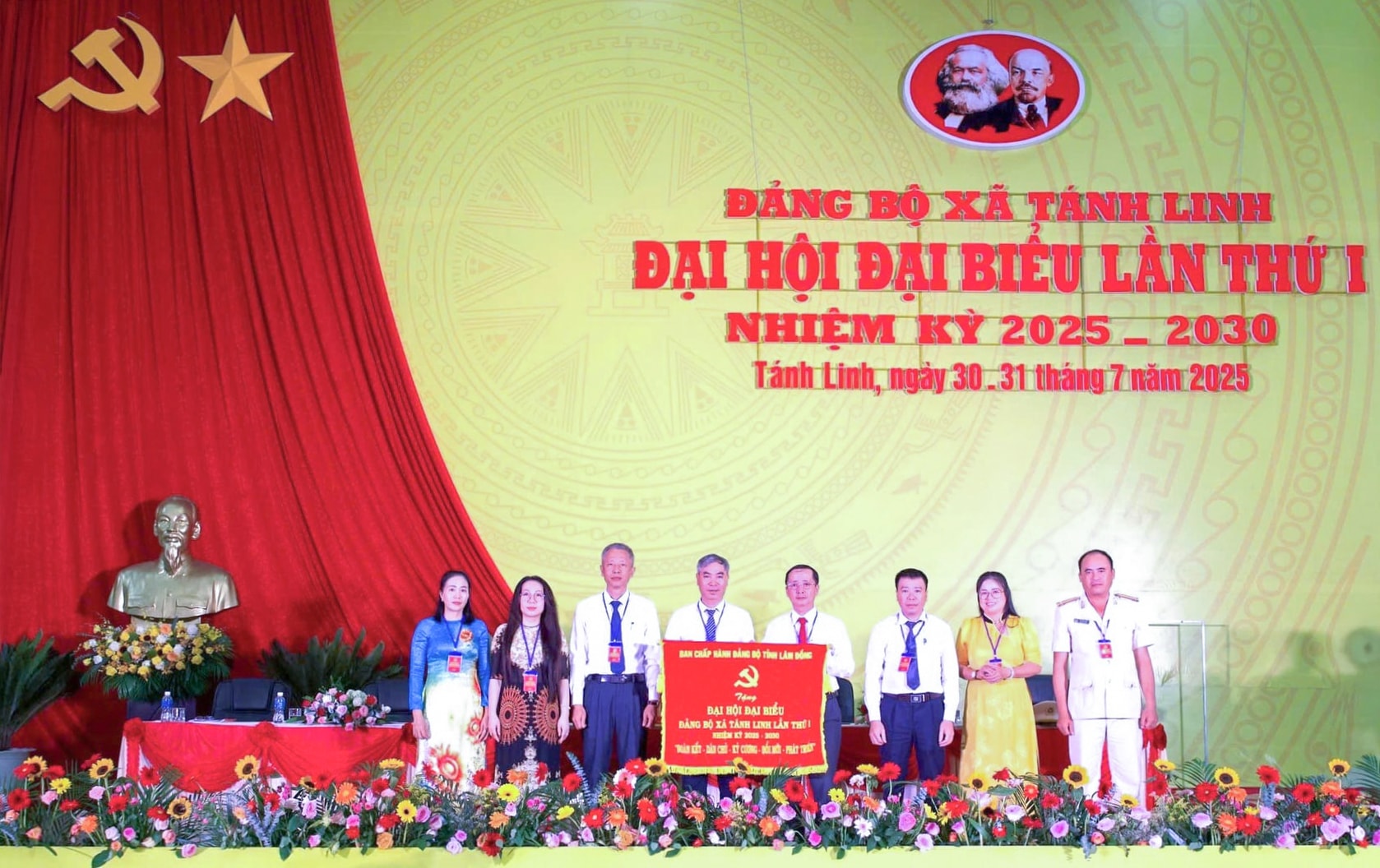 Đồng chí Nguyễn Văn Quang, Ủy viên Ban Thường vụ, Chủ nhiệm Ủy ban Kiểm tra Tỉnh ủy trao bức trướng của Ban Chấp hành Đảng bộ tỉnh Lâm Đồng tặng Đại hội Đảng bộ xã Tánh Linh