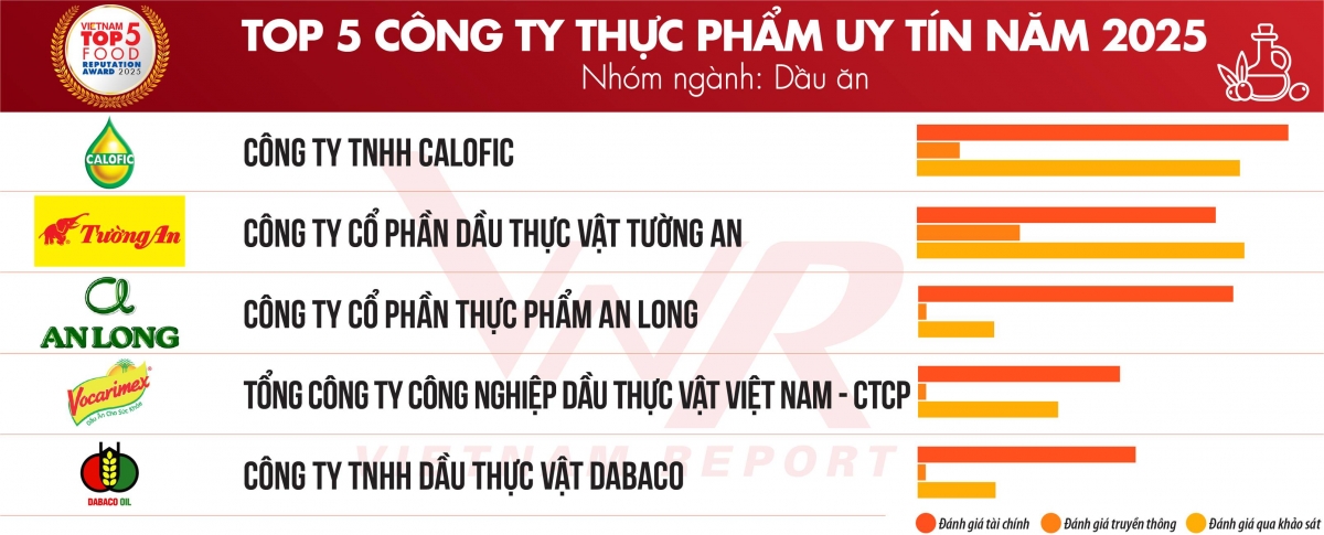 ( Oil được VietnamReport xếp hạng trong nhóm 5 doanh nghiệp thực phẩm uy tín ở ngành dầu ăn)