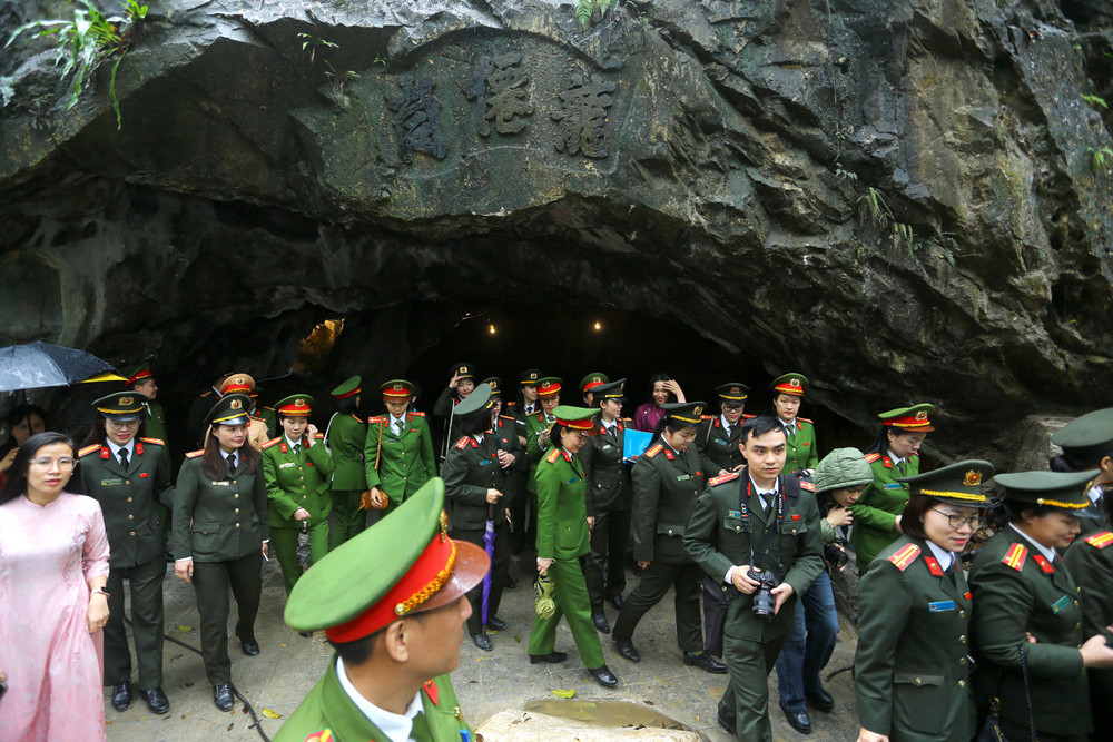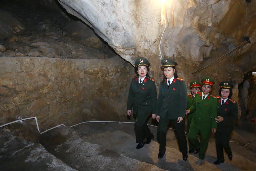 Giữa không gian trầm mặc của Hang Trầm, từng hàng cán bộ, chiến sĩ Công an Thủ đô lặng lẽ bước chân tham quan di tích, như đi ngược dòng thời gian trở về với những năm tháng lịch sử hào hùng của dân tộc