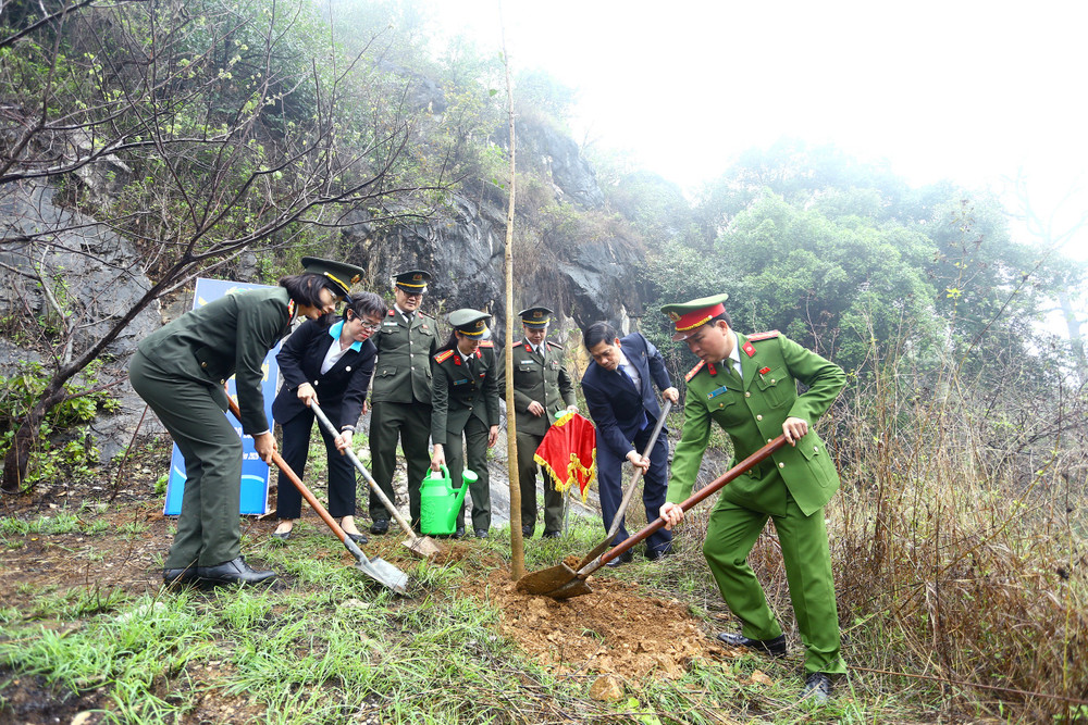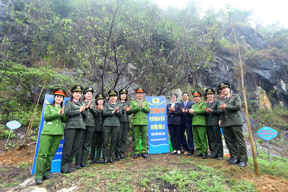 Cán bộ, hội viên phụ nữ Công an Thủ đô hăng hái tham gia trồng cây tại Núi Trầm trong khuôn khổ chương trình “Tết trồng cây – Phụ nữ Công an Thủ đô vun trồng tương lai”