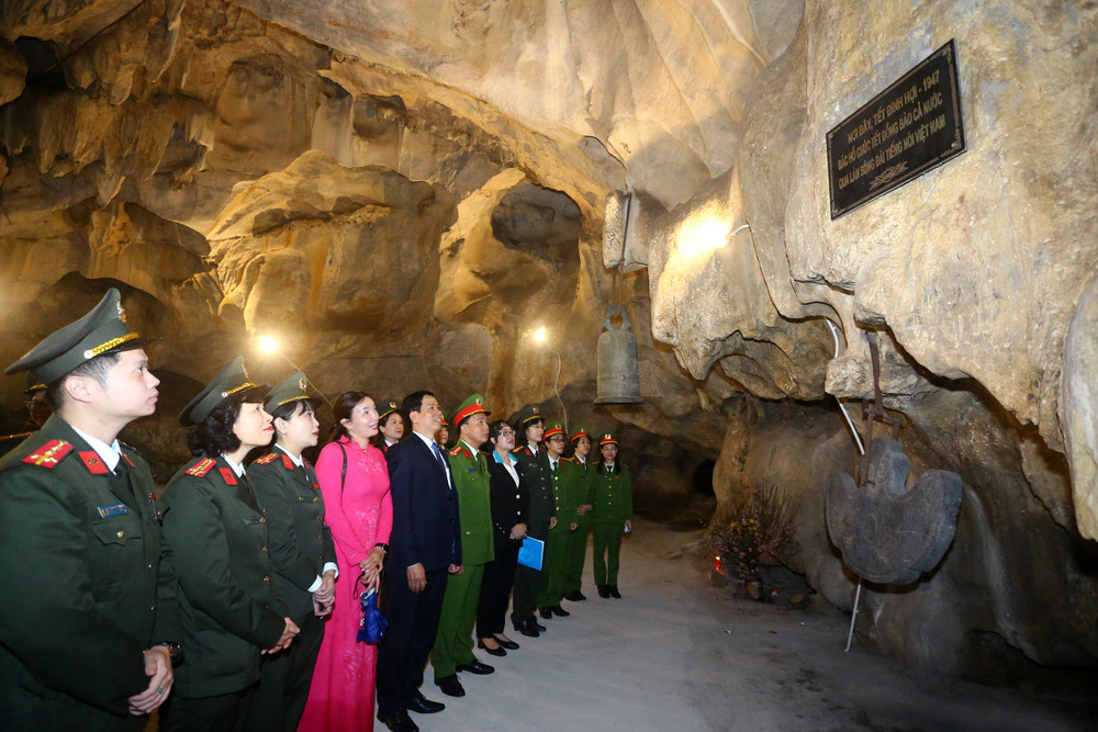 Các đại biểu tham quan Hang Trầm, nơi Đài Tiếng nói Việt Nam phát đi “Lời kêu gọi Toàn quốc kháng chiến” của Chủ tịch Hồ Chí Minh năm 1946