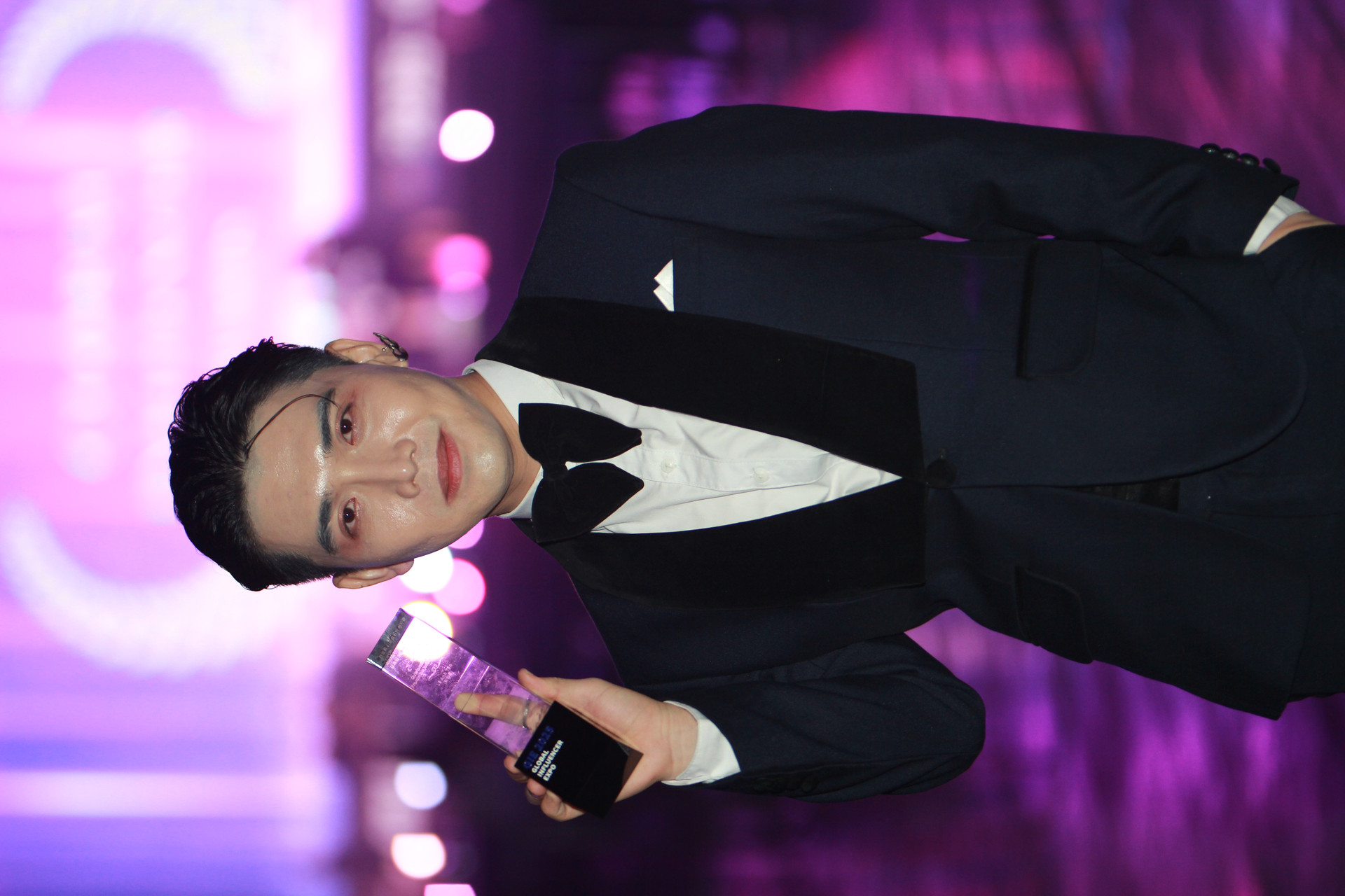 Lê Anh Tôn nhận giải Outstanding Acting and Promotion Influencer Award tại Global Influencer Expo. Ảnh: NVCC