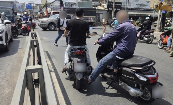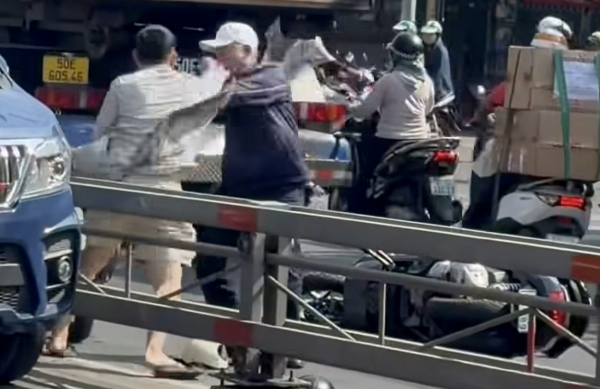 2 bên bỏ xe xông vào ẩu đả khiến giao thông ở đoạn đường này bị ùn ứ, náo loạn. Hình ảnh 2 người ẩu đã bị người dân ghi hình lại và đăng tải trên mạng xã hội.