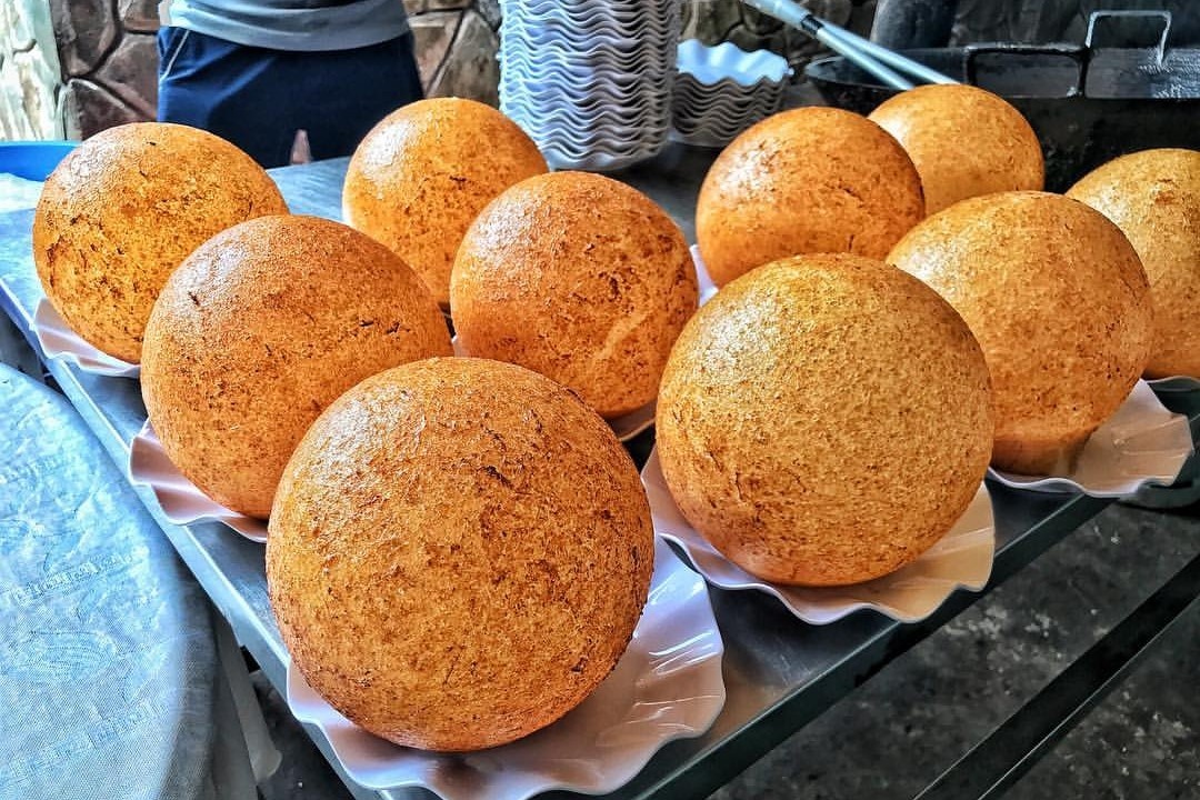 Cầm đĩa xôi chiên phồng, Nick DiGiovanni đến bàn ngồi, nhân viên sẽ ép viên xôi xẹp xuống và dùng kéo cắt thành nhiều miếng nhỏ, chấm với tương ớt ngọt. Bên ngoài giòn rụm, bên trong dẻo như mochi, khi xé ra lại có độ dai tương tự phô mai Brazil trong bánh mì. Tổng thể hương vị, kết cấu rất đặc biệt.