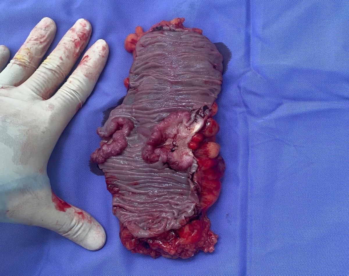 Đoạn đại tràng sigma chứa khối ung thư được các bác sĩ phẫu thuật nội soi cắt bỏ hoàn toàn - Ảnh BVCC