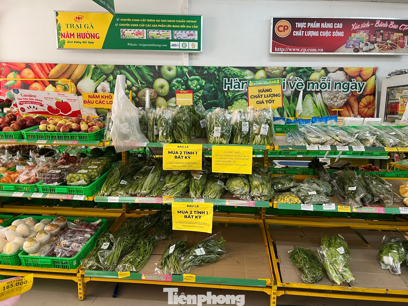 Nhiều siêu thị giảm giá rau trong thời điểm mặt hàng này đang tăng chóng mặt. Siêu thị Bách Hóa Xanh còn dán hẳn thông báo mong khách hàng thông cảm vì rau có thể tạm thiếu vì không đạt chất lượng đầu vào do mưa bão