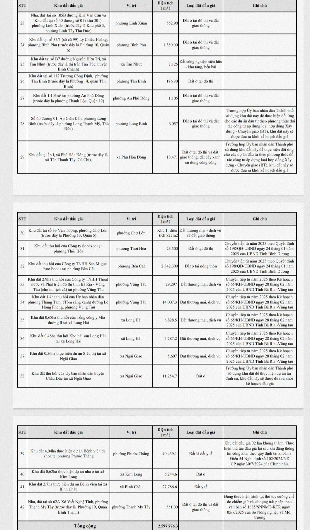 42 khu đất đấu giá quyền sử dụng đất