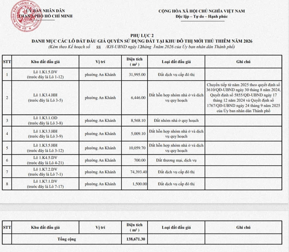 8 lô đất tại Khu đô thị mới Thủ Thiêm được đấu giá