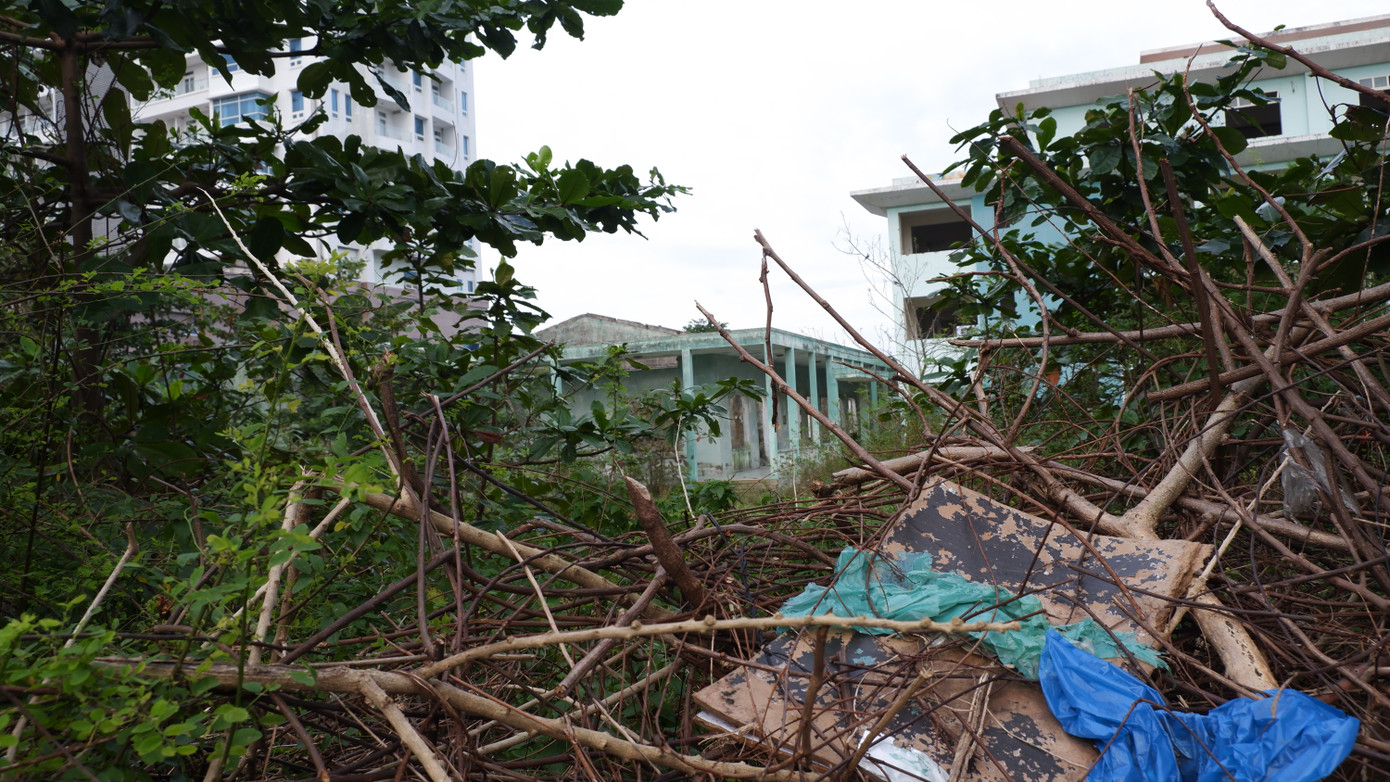 Bên trong khu đất, các công trình bỏ hoang tạo khung cảnh ma mị, hoang tàn ngay khu vực du lịch đông đúc.