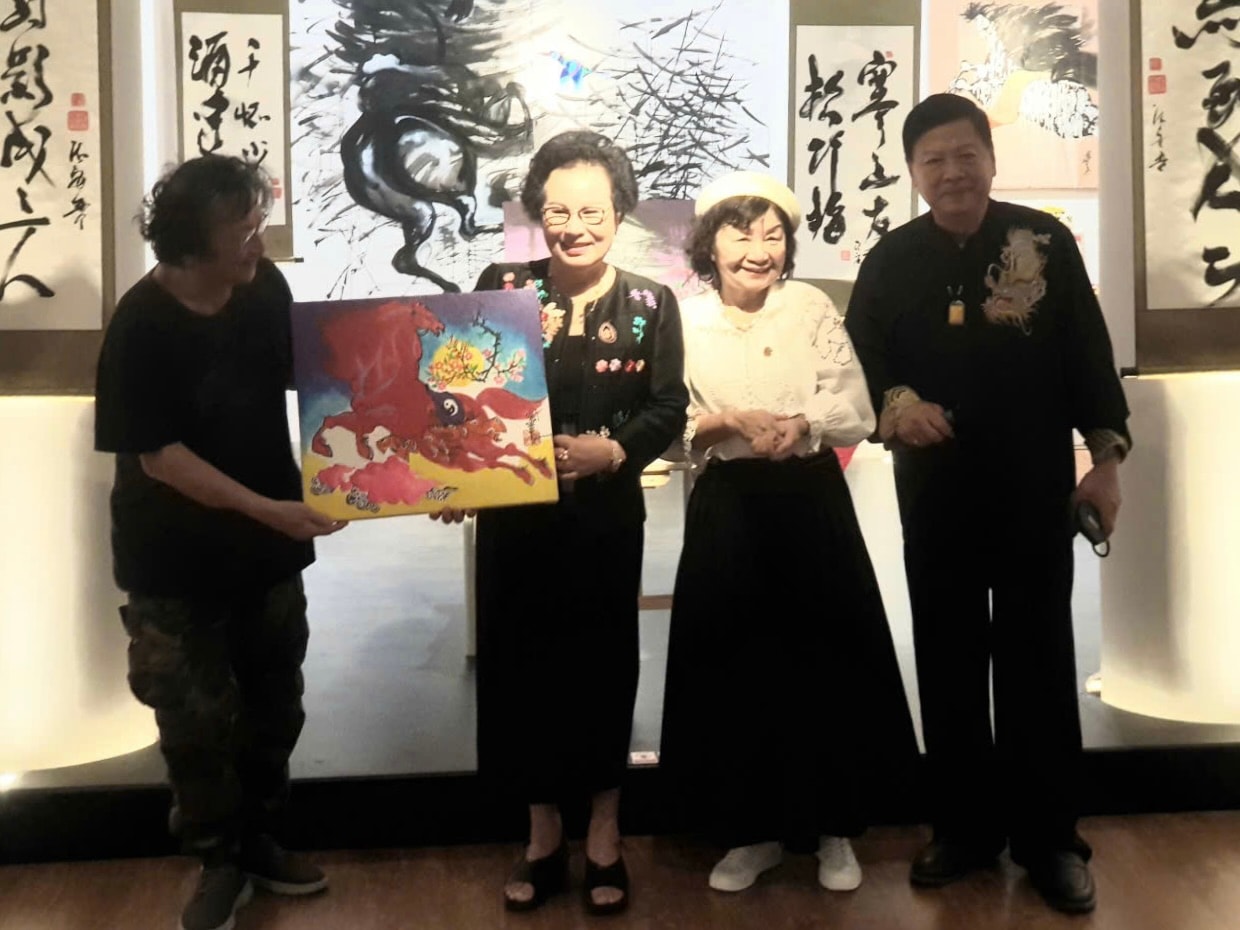 Người trúng đấu giá bức tranh "Hồng mã giáng trần" quyết định "lì xì" thêm 20 triệu tặng quỹ "Mãi mãi tuổi 20". Ảnh: Năng Lực