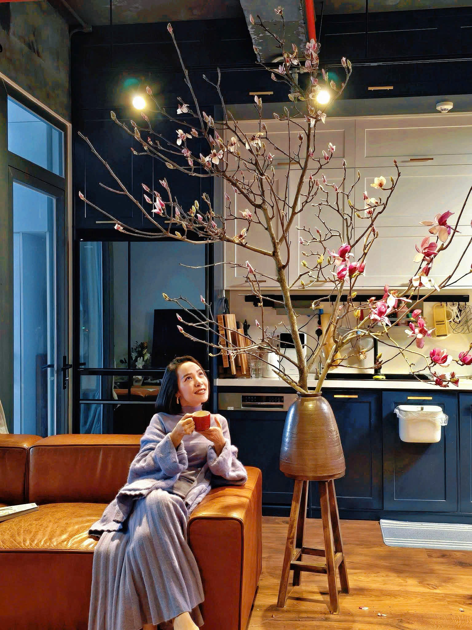 Chị Hải Yến thường xuyên lựa chọn mộc lan tím làm đẹp phòng khách. Ảnh: NVCC.