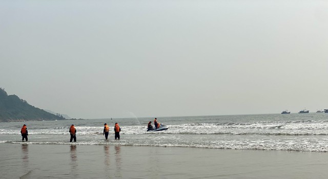 Lực lượng chức năng huy động phương tiện, nhân lực triển khai tìm kiếm 2 học sinh đuối nước mất tích trên biển Hải Bình ngày 1/4.