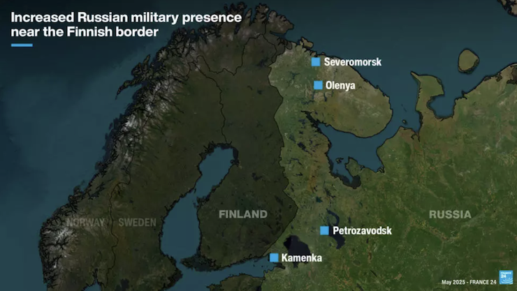 Các khu vực Nga tăng cường hiện diện quân sự gần Phần Lan. Ảnh: France24.