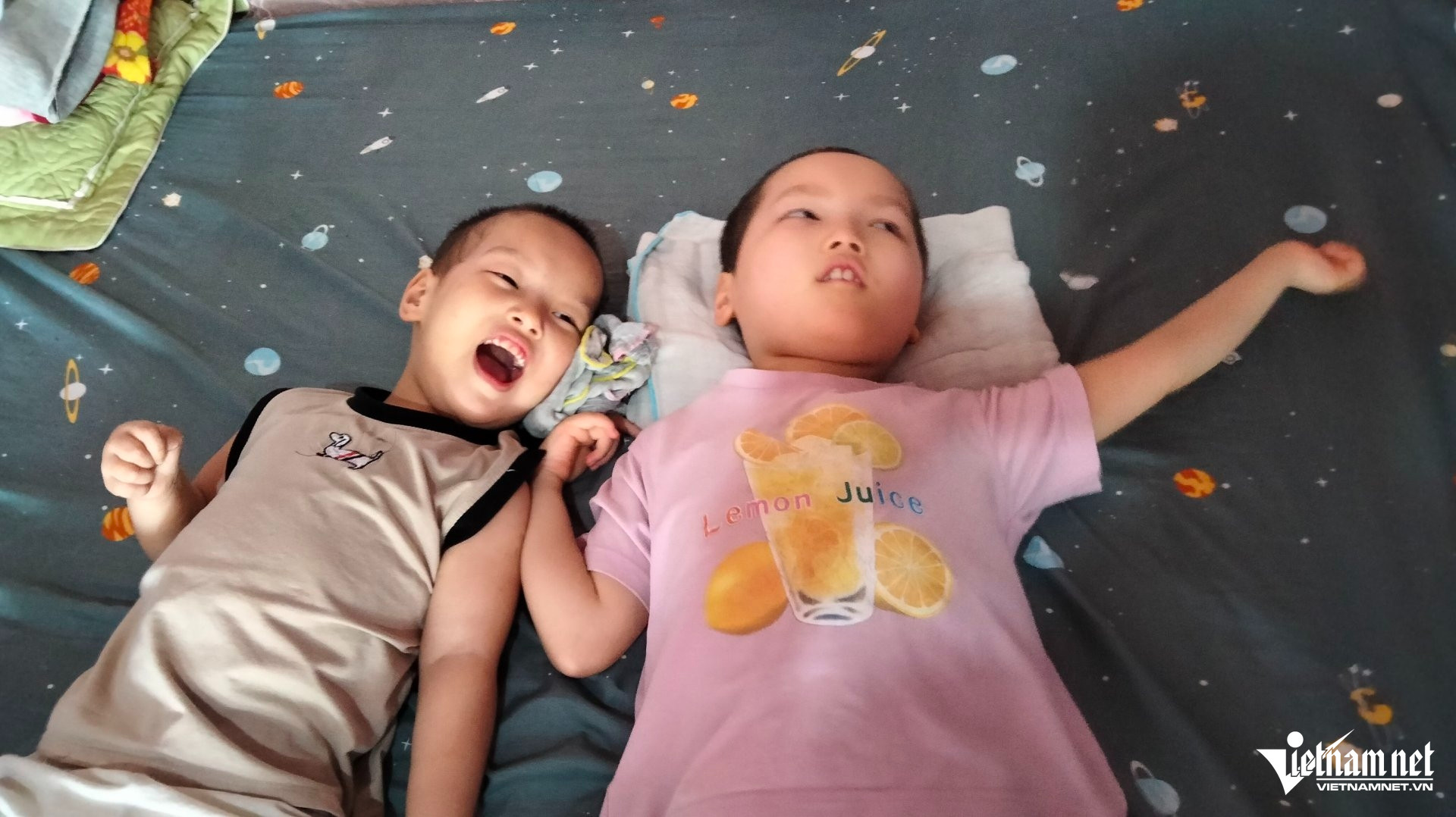 Hai bé gái con của vợ chồng chị Hằng đều nằm một chỗ do bệnh tật hành hạ. Ảnh: Sỹ Thông