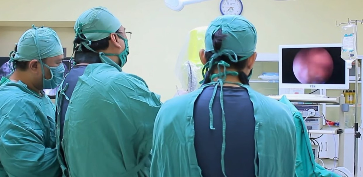 Lúc này, các bác sĩ khoa Ngoại Tiết Niệu đã hội chẩn và lên phương án thực hiện nội soi tán sỏi qua da bằng đường hầm nhỏ (mini PCNL) kết hợp với máy soi thận mềm bằng laser Holmium.