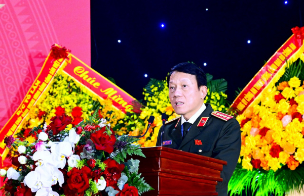 Chánh Thanh tra Bộ Công an Bùi Quang Thanh trình bày diễn văn tại buổi lễ.