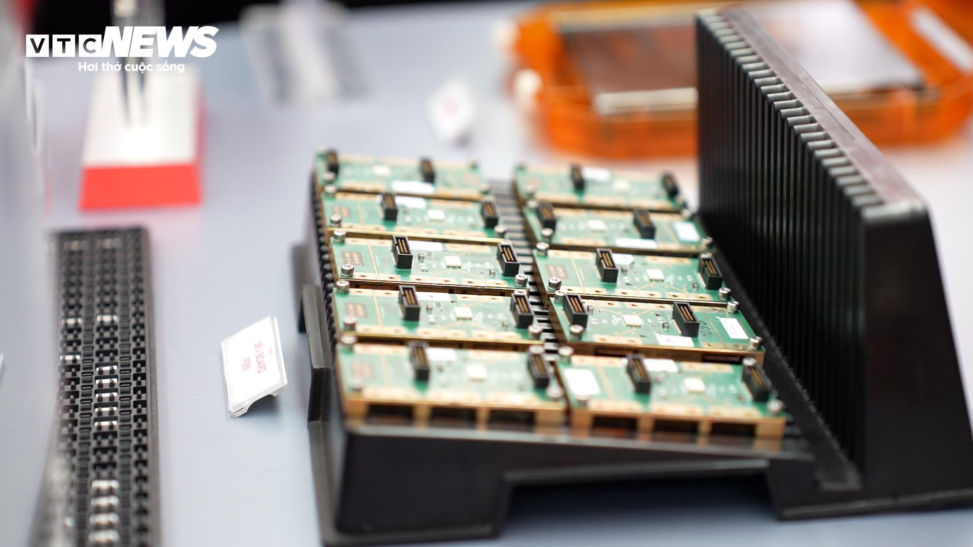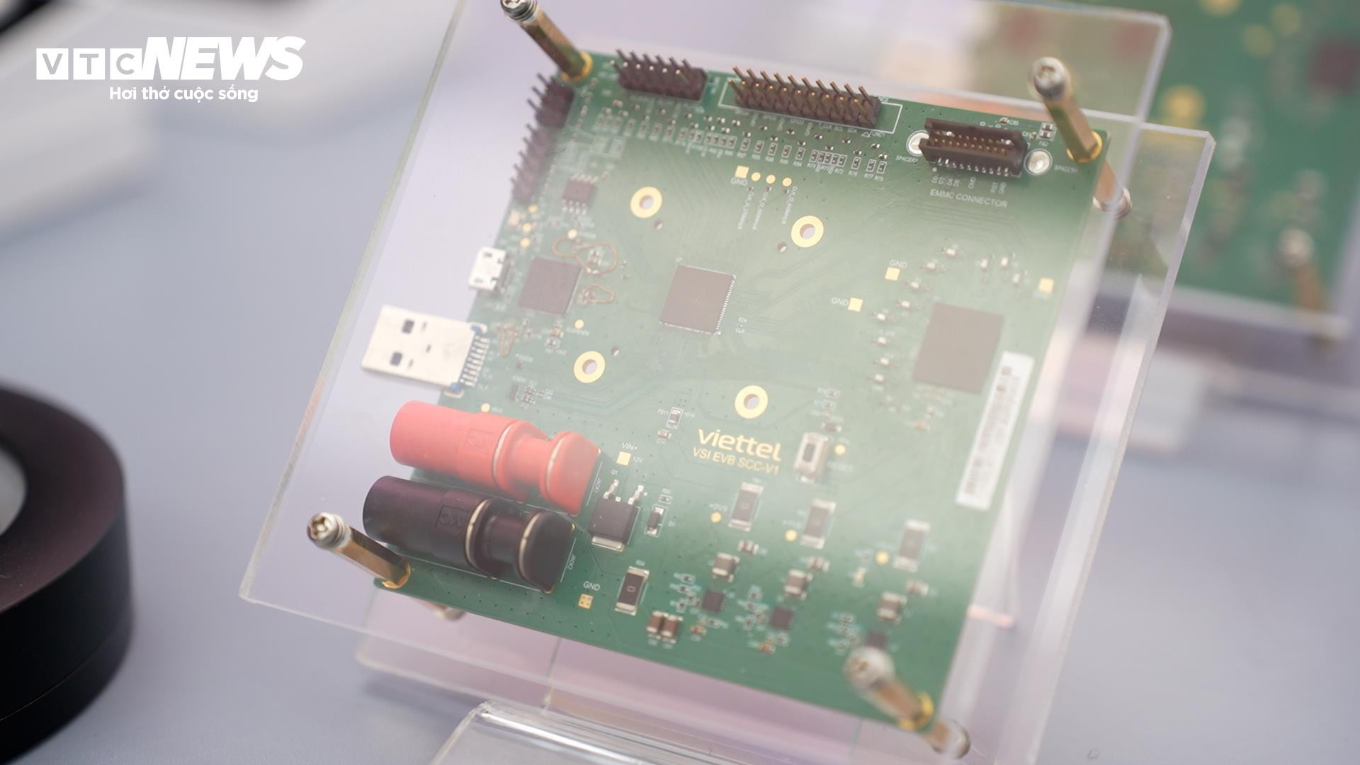 Chip Viettel trưng bày tại lễ khởi công xây dựng nhà máy chế tạo chip bán dẫn ngày 16/1. (Ảnh: Hùng Cường)