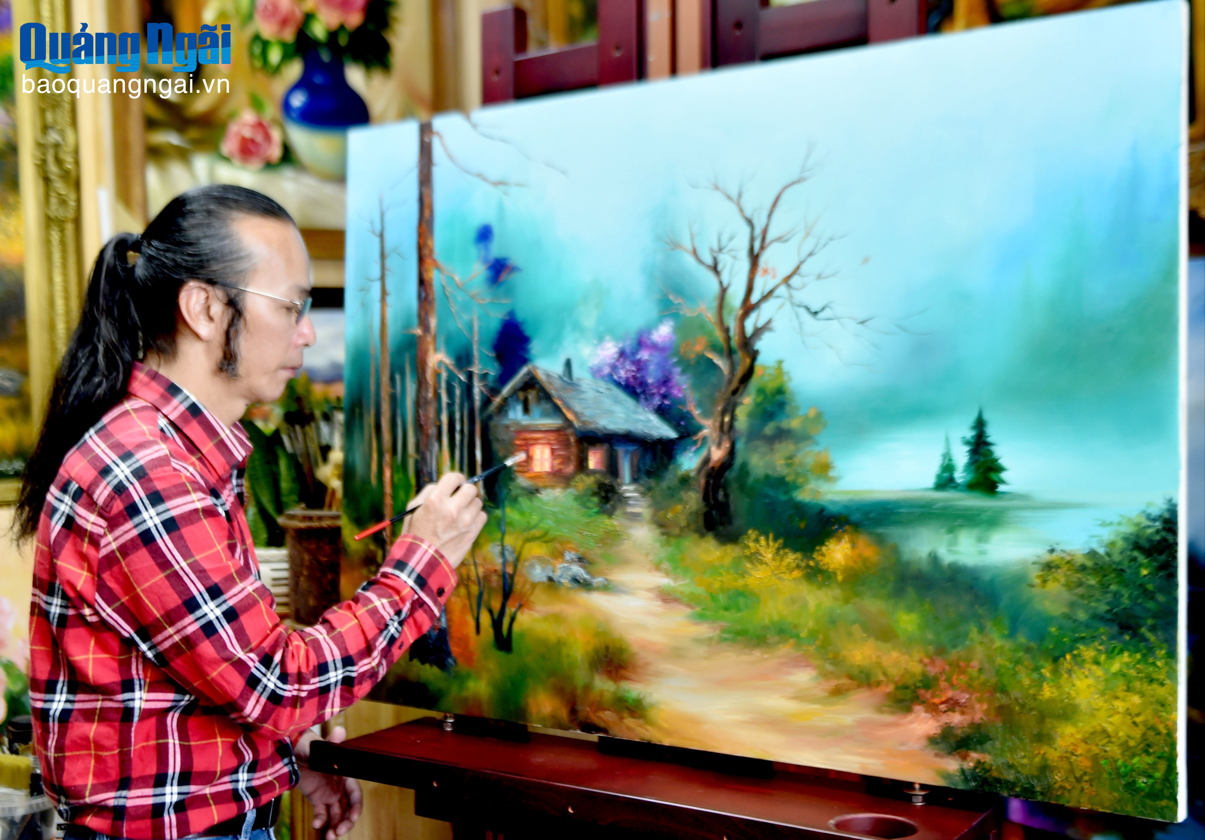 Họa sĩ Huỳnh Sơn Lâm, một người con của quê hương Tịnh Khê, đang sinh sống và làm việc tại phường Cam Ly - Đà Lạt (Lâm Đồng). Ảnh: HÀ HỮU NẾT