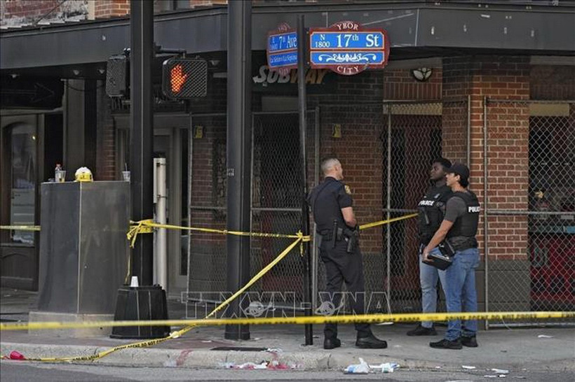 Cảnh sát phong tỏa khu vực xảy ra vụ đấu súng ở thành phố Tampa, bang Florida, Mỹ tháng 10/2023. (Ảnh: AP/TTXVN)