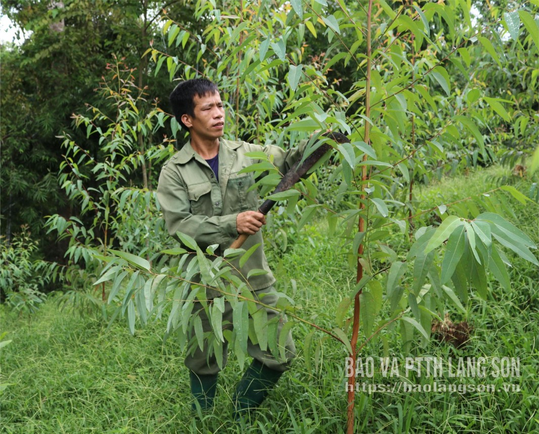 Một ngày giữa tháng 1/2026, chúng tôi có dịp cùng cán bộ Phòng Giao dịch NHCSXH Hữu Lũng đến tham quan mô hình trồng bạch đàn của gia đình chị Nguyễn Thị Thu Hằng, thôn Địa Phận, xã Thiện Tân. Chị Hằng chia sẻ: Gia đình tôi có 2 ha rừng bạch đàn được trồng từ năm 2020, tuy nhiên gia đình tôi gặp khó khăn về vốn nên chăm sóc cây không được đầy đủ. Đầu năm 2025, khi được cán bộ NHCSXH Hữu Lũng hướng dẫn, gia đình tôi đã vay 100 triệu đồng của NHCSXH để đầu tư mua phân bón, thuê người chăm sóc, phát dọn. Bên cạnh đó, từ nguồn vốn vay được gia đình tôi tiếp tục trồng mới 1 ha cây bạch đàn. Nhờ được tiếp cận kịp thời với nguồn vốn vay ưu đãi, vừa qua gia đình tôi khai thác 2 ha rừng bạch đàn thu về 500 triệu đồng, hiện gia đình tôi tiếp tục bón phân, chăm sóc chồi bạch đàn sau khai thác.