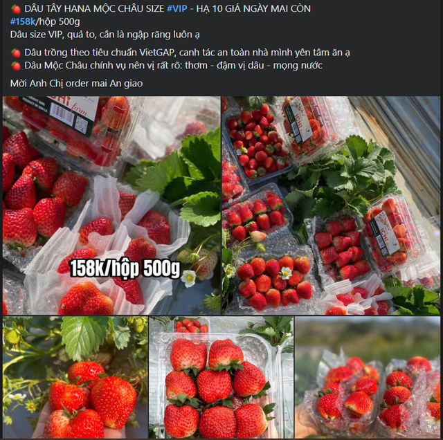 "Dâu tây Mộc Châu hiện đang là một trong những loại trái cây được nhiều người tiêu dùng ưa chuộng. Mặc dù mới đầu mùa, mức giá cao gấp vài lần so với chính vụ nhưng khách hàng vẫn không tiếc tiền chi. Hàng càng to, đẹp, đều thì giá càng cao, khoảng hơn 400.000 đồng/kg đối với hàng VIP, còn hàng có kích thước nhỏ khoảng 180.000 đồng/kg. Dâu tây Mộc Châu có hương vị thơm ngon, đỏ mọng bắt mắt, chua ngọt vừa phải và không bị nhạt như dâu Trung Quốc nên rất được lòng người tiêu dùng Việt.